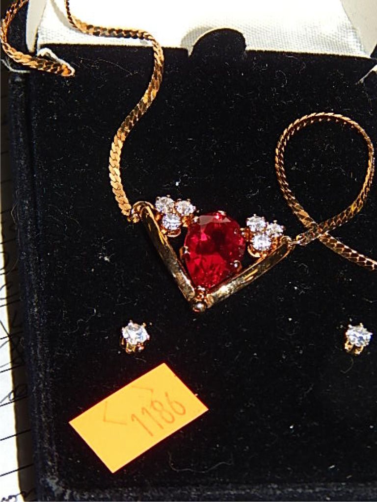 NECKLACE AND EARING SET - 10K GOLD - RUBY AND CUBIC ZIRCONIAN - FROM EATON'S