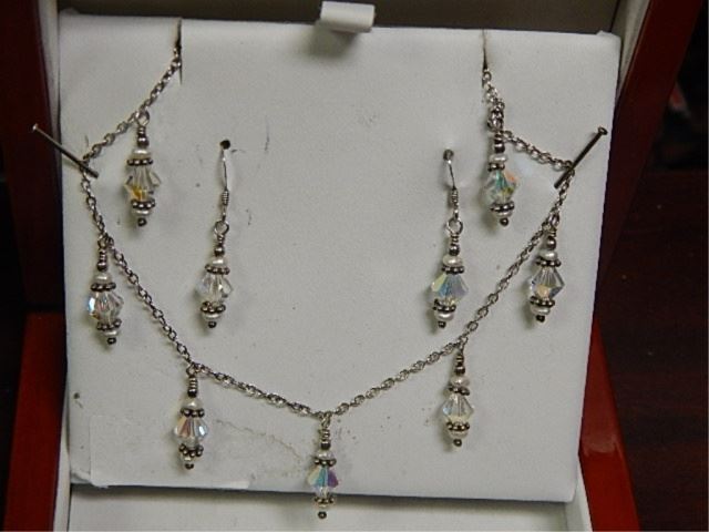 NECKLACE AND EARING SET -SILVER AND SWAROVSKI CRYSTALS - RETAIL APPROX. $150.00