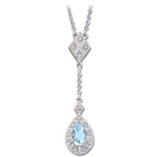 This beautiful Necklace is 14k White Gold and it features a Genuine AQUAMARINE surrounded by DIAMONDS. The Pearshaped AQUAMARINE = .50 CARATS and the DIAMONDS = .20 CARATS!