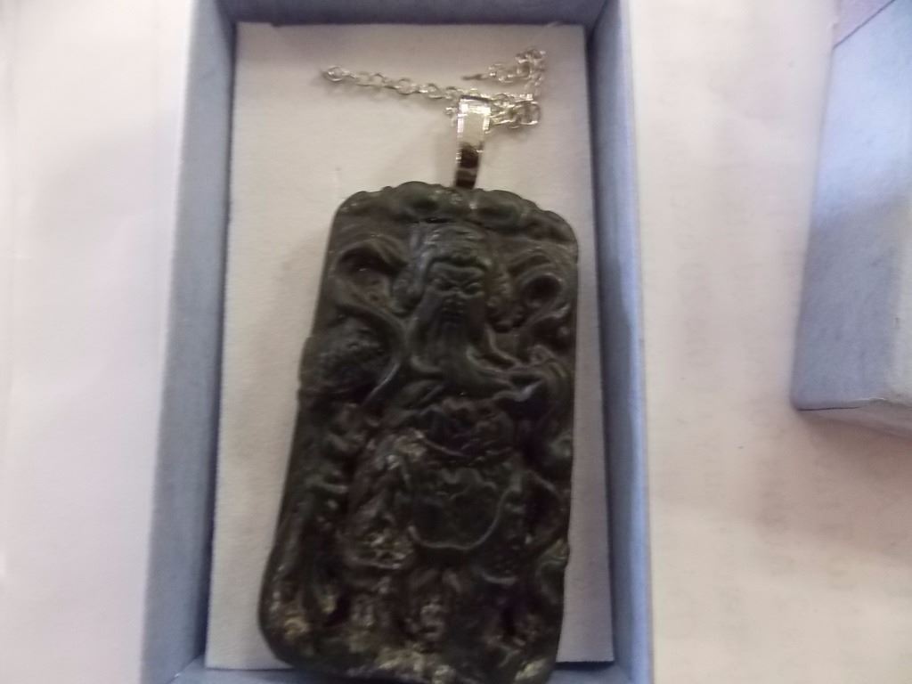 NECKLACE - CARVED BLACK JADE - ORIENTAL DESIGN