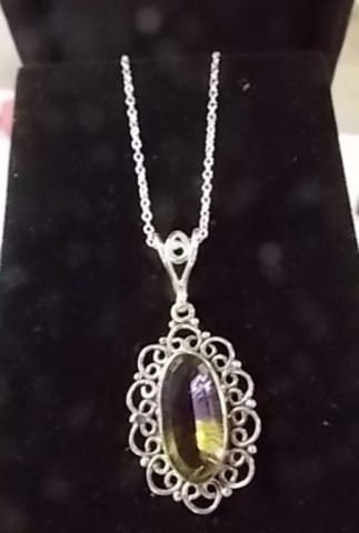 NECKLACE - CUSTOM MADE LARGE AMETRINE BAZEL SET IN STERLING SILVER - RETAIL ESTIMATE $200