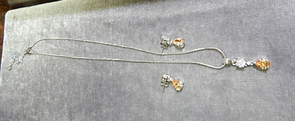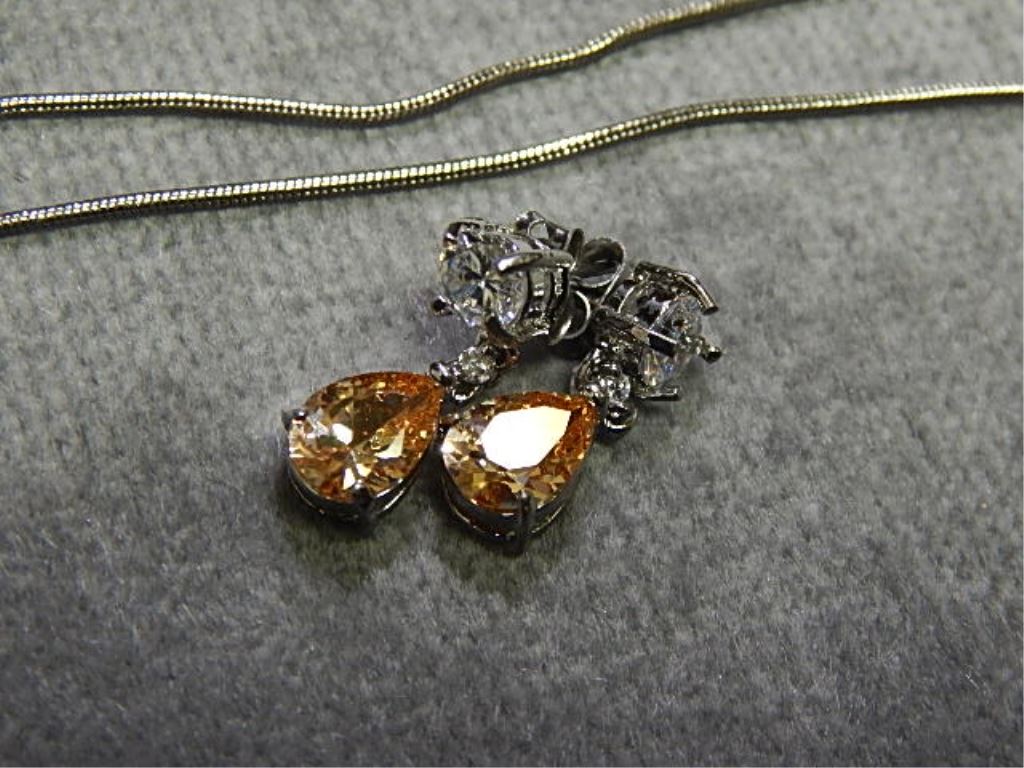 NECKLACE & EARING SET - SILVER TONE - CLEAR RHINSTONES AND TOPAZ TEAR DROPS