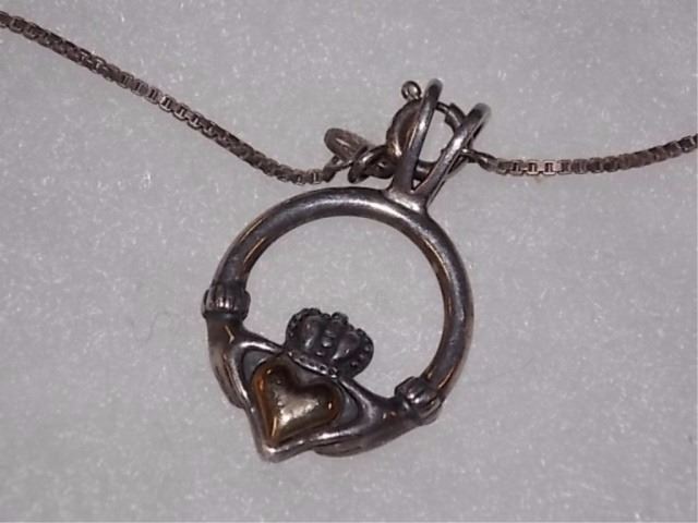 NECKLACE - IRISH -CLADDAGH - STERLING SILVER - W/ 14KT ACCENTS - WITH 17' STERLING SILVER CHAIN