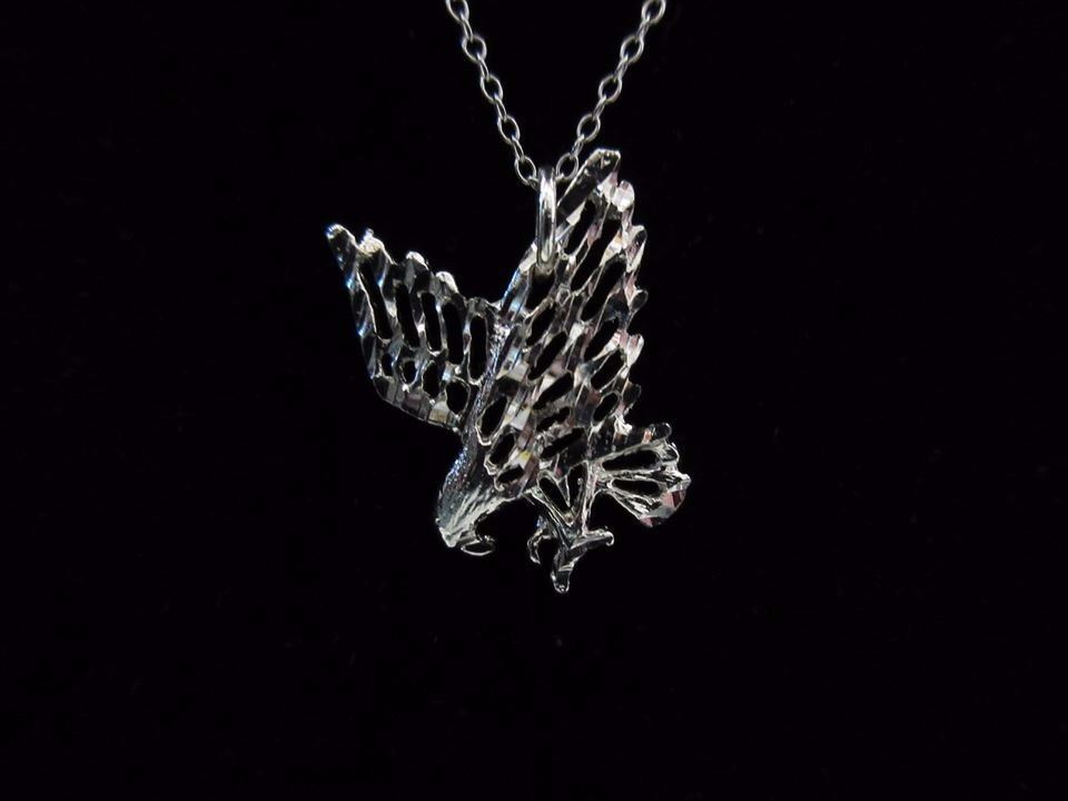NECKLACE - NEW STERLING SILVER CHAIN WITH NEW FLYING EAGLE DESIGNED SILVER PENDANT - RETAIL ESTIMATE $300