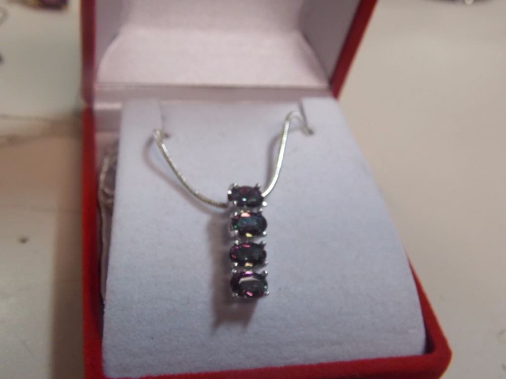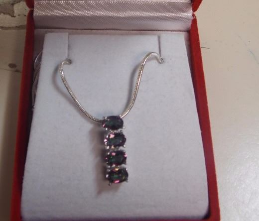 NECKLACE - OCEAN MYSTIC TOPAZ & DIAMONDS SETTING STERLING SILVER - HAS 4 OVAL FACETTED MYSTIC TOPAZ & 4 DIAMONDS - SUGGESTED RETAIL $400