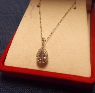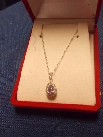NECKLACE - PEAR FACETTED AMETHYST & DIAMOND IN STERLING SILVER SETTING - 2 VS CLARITY DIAMONDS - SUGGESTED RETAIL $400