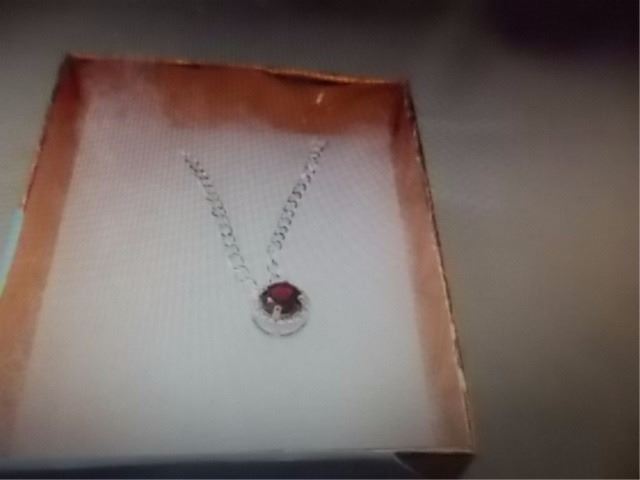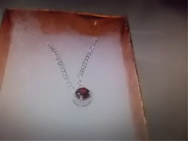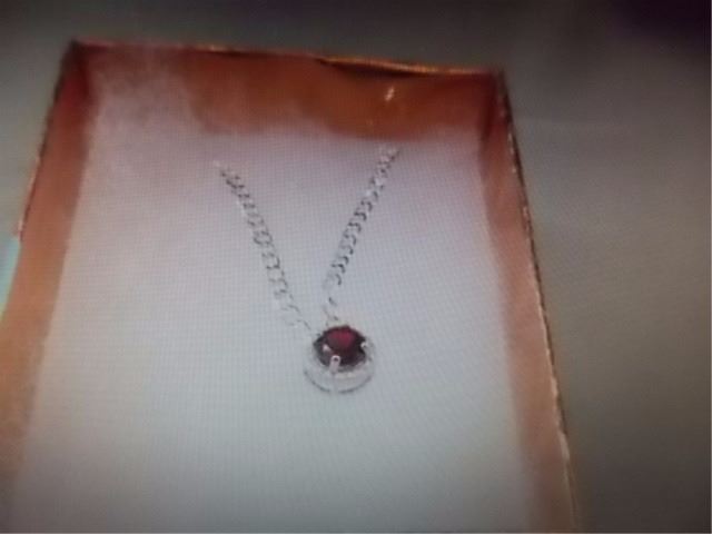 NECKLACE - ROUND FACETED RICH DEEP RED/BROWN GARNET & ROUND FACETED DIAMOND IN STERLING SILVER SETTING - RETAIL ESTIMATE $275
