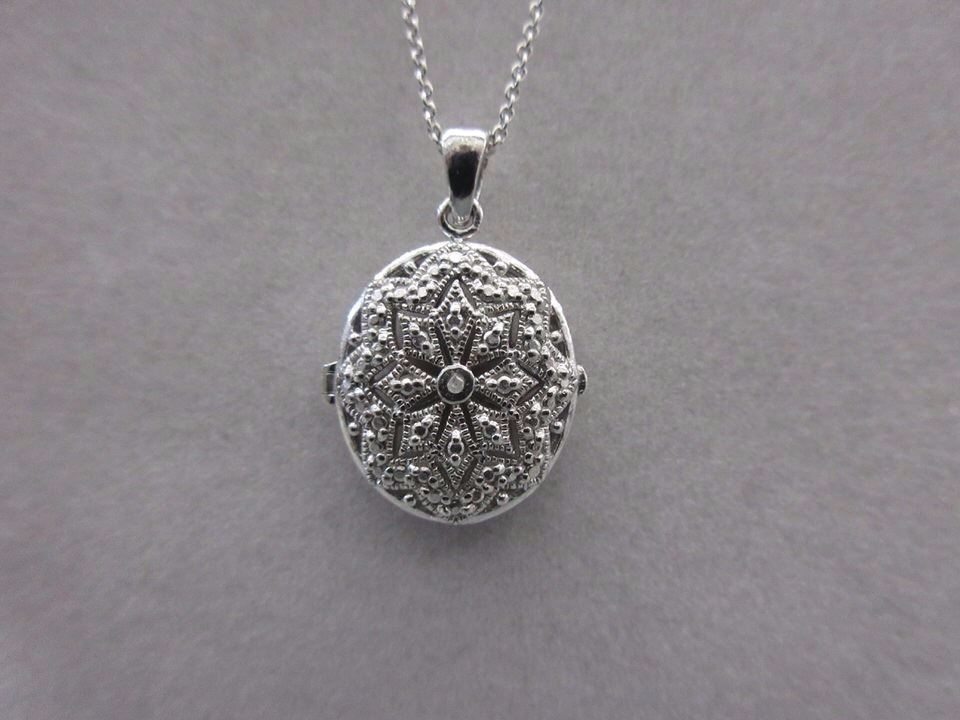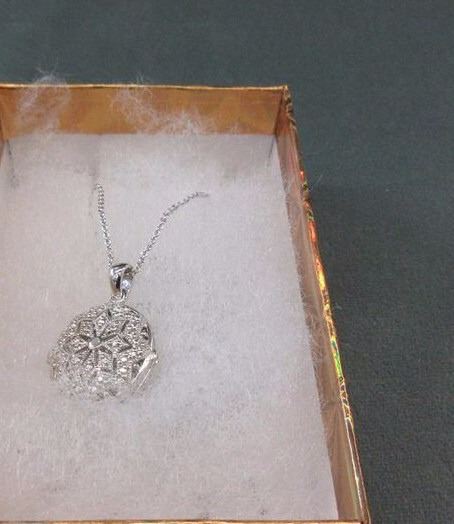 NECKLACE - SILVER TONE LOCKET PENDANT WITH DIAMOND & 18' CHAIN - RETAIL ESTIMATE $250