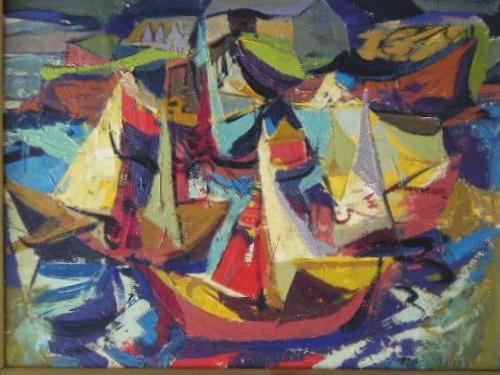 NEDDEAU, Donald Frederick Price, 1913-1998. "Malbaie, Québec". Huile sur panneau, signée. Titrée et datée "1972" verso. Oil on board, signed. Titled and dated "1972' verso. 12" x 16" - 30.4cm x 40.6cm.