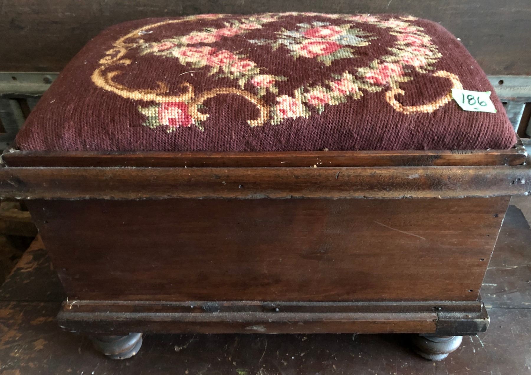 NEEDLE POINT ANTIQUE FOOT STOOL