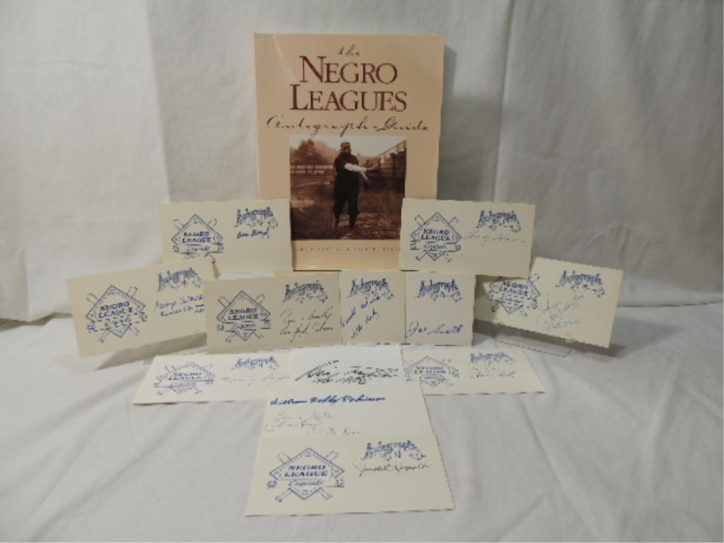 THE NEGRO LEAGUES AUTOGRAPH GUIDE. 13 AUTOGRAPH CARDS WITH SIGNATURES. PLEASE BE ADVISED, AND INFORMED REGARDING SIGNATURES OR AUTOGRAPHS THAT WE SELL AT AUCTION: WE ARE NOT AUTHENTICATORS, AND WE DO NOT AUTHENTICATE, OR VALIDATE ANY AUTOGRAPHS OR SIGNATURES THAT WE OFFER AT AUCTION. SOME AUTOGRAPHS OR SIGNATURES MAY COME WITH AN AUTHENTICATION FROM ANY ONE OF LITERALLY HUNDREDS OF AUTHENTICATORS ACROSS THE COUNTRY, AND AROUND THE WORLD. WE DO NOT ENDORSE ANY AUTHENTICATOR, NOR DO WE GUARANTEE THAT ANY AUTOGRAPH OR SIGNATURE IS AUTHENTIC, OR THAT IT WILL PASS AUTHENTICATION BY ANY AUTHENTICATOR. ALL AUTOGRAPHS OR SIGNATURES ARE SOLD
