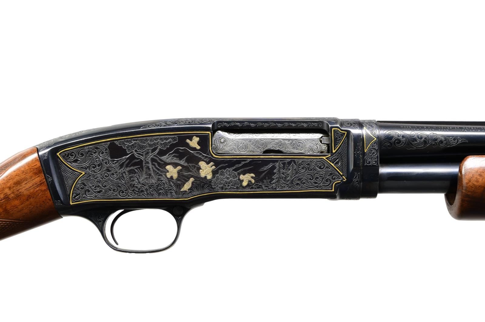 NEIL HARTLIEP ENGRAVED WINCHESTER 42 PUMP SHOTGUN.