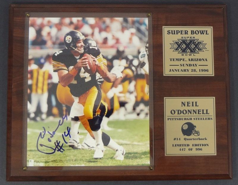 ORIGINAL SIGNATURE OF NEIL O'DONNELL, PITTSBURGH STEELERS #14 QUARTERBACK COMMEMORATING SUPER BOWL XXX, LIMITED EDITION 447 / 996, EST$35-$55