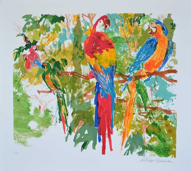 Artist: Leroy Neiman - Title: Neiman Birds of Paradise - Medium: Serigraph on Fine Paper - Signature: Hand-signed by the Artist - Limited Edition: 375 - Image Size: Approximately 25 inches x 29 inches - Paper Size: Approximately 32 inches x 35 inches - Unframed - Details: This work comes with a Certificate of Authenticity - Biography: Over 40 years of unending brilliance in the areas of sport, art and leisure have taken LeRoy Neiman to the pinnacle of artistic fame. His primary training in the field was at the re-known Chicago Art Institute Working commercially, he met a young ad man starting a new and revolutionary "art" publication that was to have a profound effect on his professional life. - The man was Hugh Hefner; the publication, Playboy magazine. For four decades LeRoy has graced those pages with his spot and leisure panels. LeRoy works in a patented impressionistic style that gives life to action and movement. His panels explode with brilliant color and ambient energy. He is, perhaps, the most easily recognizable artist alive today. His large "coffee table" compendium books are very popular and a joy to view and read. His body of work is enormous and still growing today. - Neiman's originals have sold for more than $300,000.00. -
