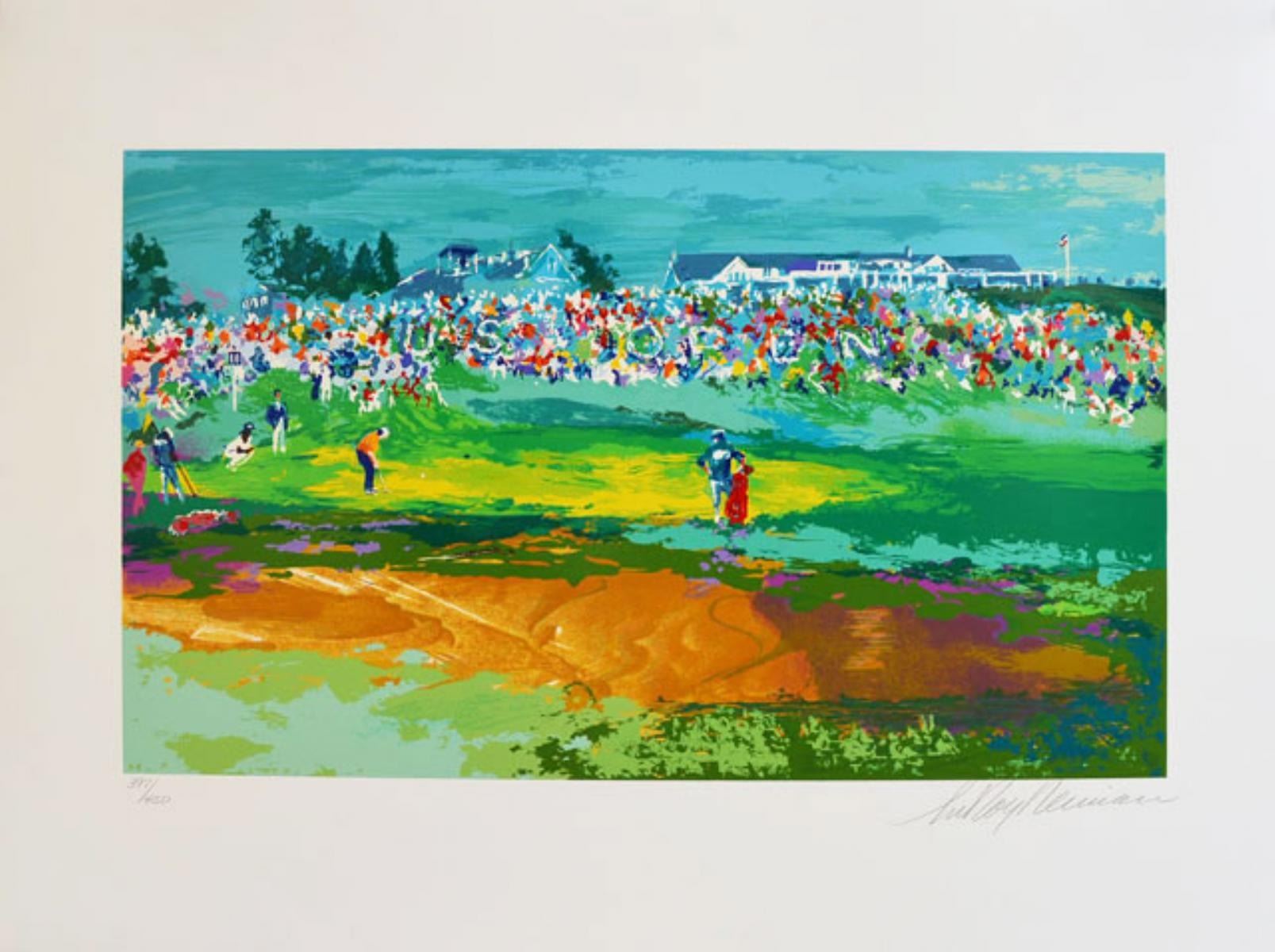 Artist: Leroy Neiman - Title: Home Hole Shinnecock - Medium: Serigraph on Fine Paper - Signature: Hand-signed by the Artist - Limited Edition: 450 - Image Size: Approximately 15 ½ inches x 25 ¾ inches - Paper Size: Approximately 24 ½ inches x 34 inches - Unframed - Details: This work comes with a Certificate of Authenticity - Biography: Over 40 years of unending brilliance in the areas of sport, art and leisure have taken LeRoy Neiman to the pinnacle of artistic fame. His primary training in the field was at the re-known Chicago Art InstituteWorking commercially, he met a young ad man starting a new and revolutionary "art" publication that was to have a profound effect on his professional life. - The man was Hugh Hefner; the publication, Playboy magazine. For four decades LeRoy has graced those pages with his spot and leisure panels. LeRoy works in a patented impressionistic style that gives life to action and movement. His panels explode with brilliant color and ambient energy. He is, perhaps, the most easily recognizable artist alive today. His large "coffee table" compendium books are very popular and a joy to view and read. His body of work is enormous and still growing today. - Neiman's originals have sold for more than $300,000.00. -