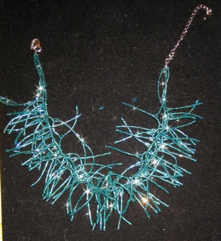 LARGE TURQUOISE BEADED NECKLACE/CHOKER - NEIMAN MARCUS, This is fully hand beaded with all iridescent glass bugle beads in a turquoise/teal blue color!!!