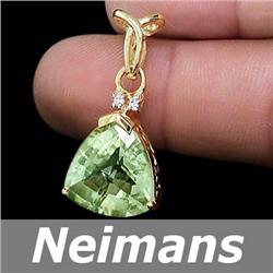 Certified 6.00 ct Green Amethyst & Diamond Pendant 14kt