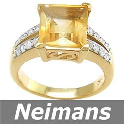 Gem Certified 3.75 ct Citrine & Diamond Ring 14kt Gold