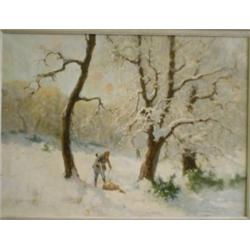 NEOGRADY, Laszlo, 1896-1962. "Hunters inspecting the Kill". Huile sur toile, signée. École hongroise. Oil on canvas, signed. Hungarian School. 23" x 31" - 58.4cm x 78.7cm. $2000/2500