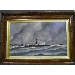 <b>Neopolitan School</b>. Study of the steam ship S.S. Anglo-Chilean. Goache on board. 14" x 23".