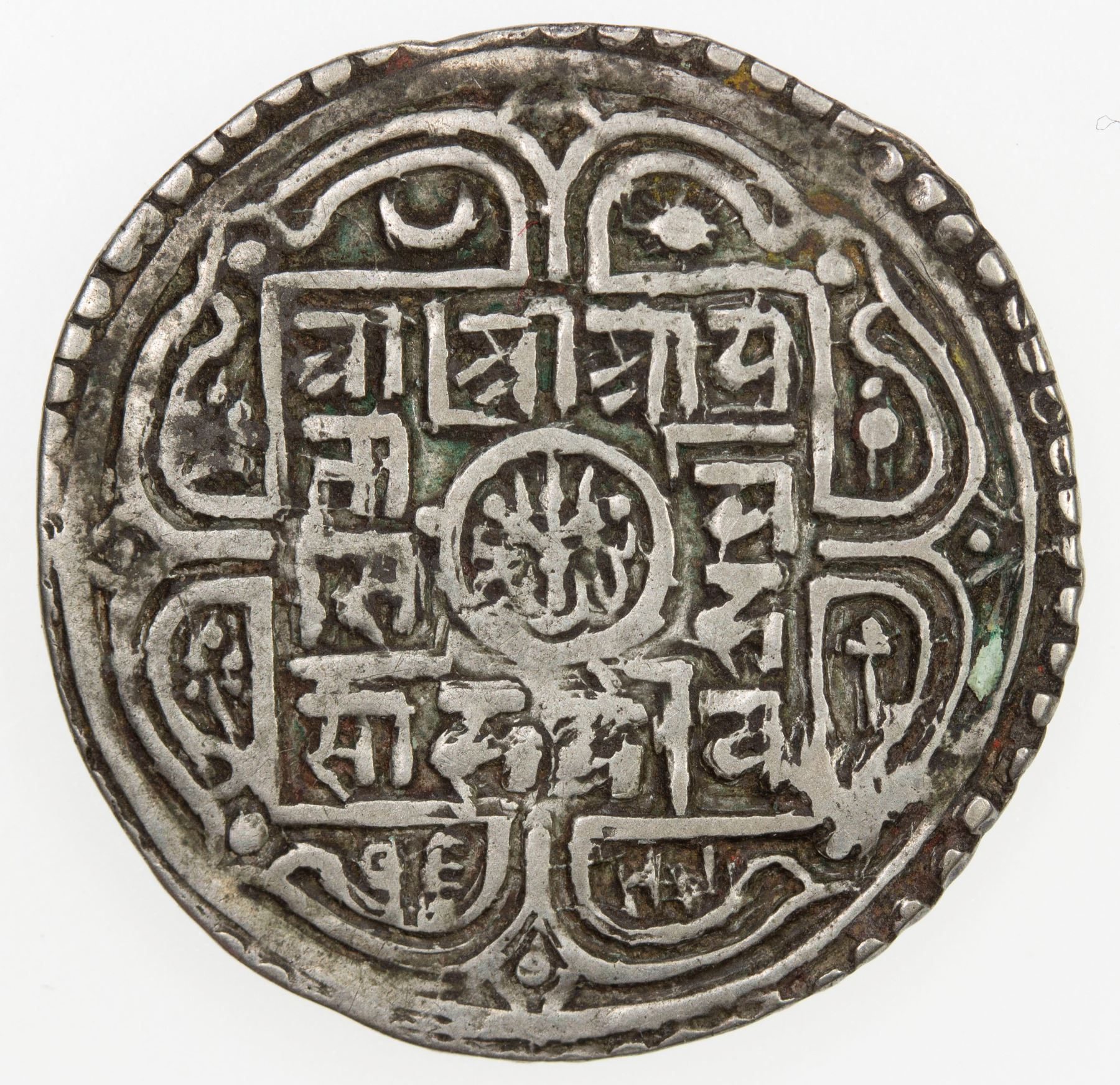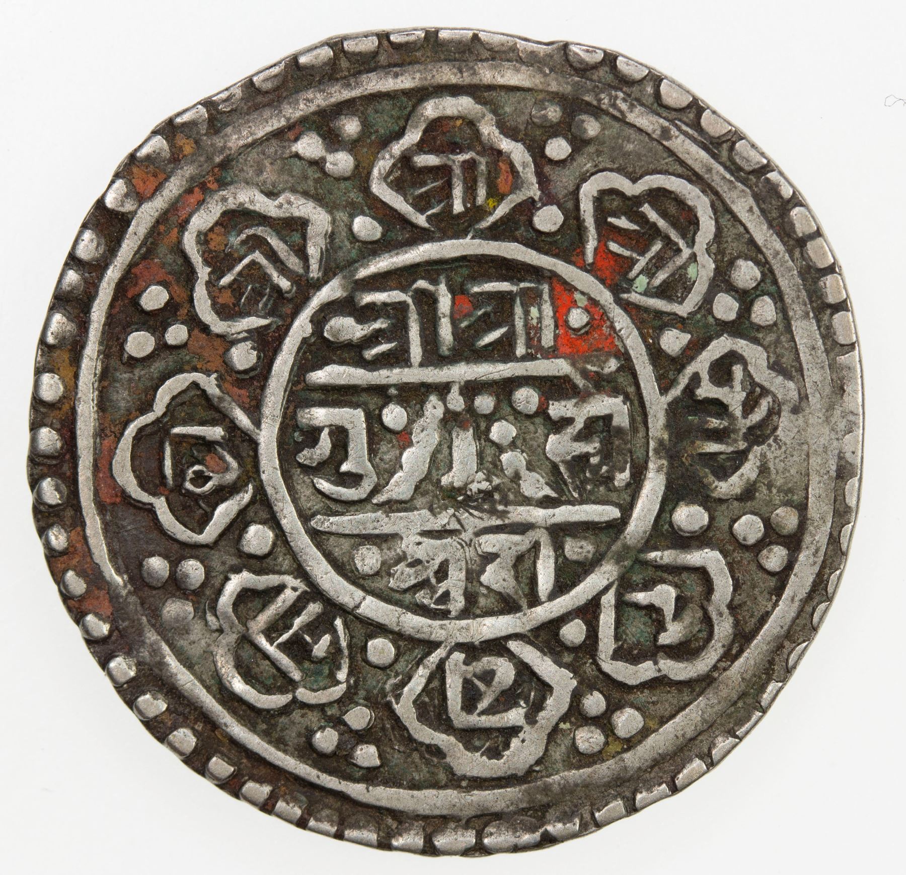 NEPAL: Pratap Simha, 1775-1777, AR mohar, SE1699, KM-472.2, Rh-644, reverse petals not joined, VF