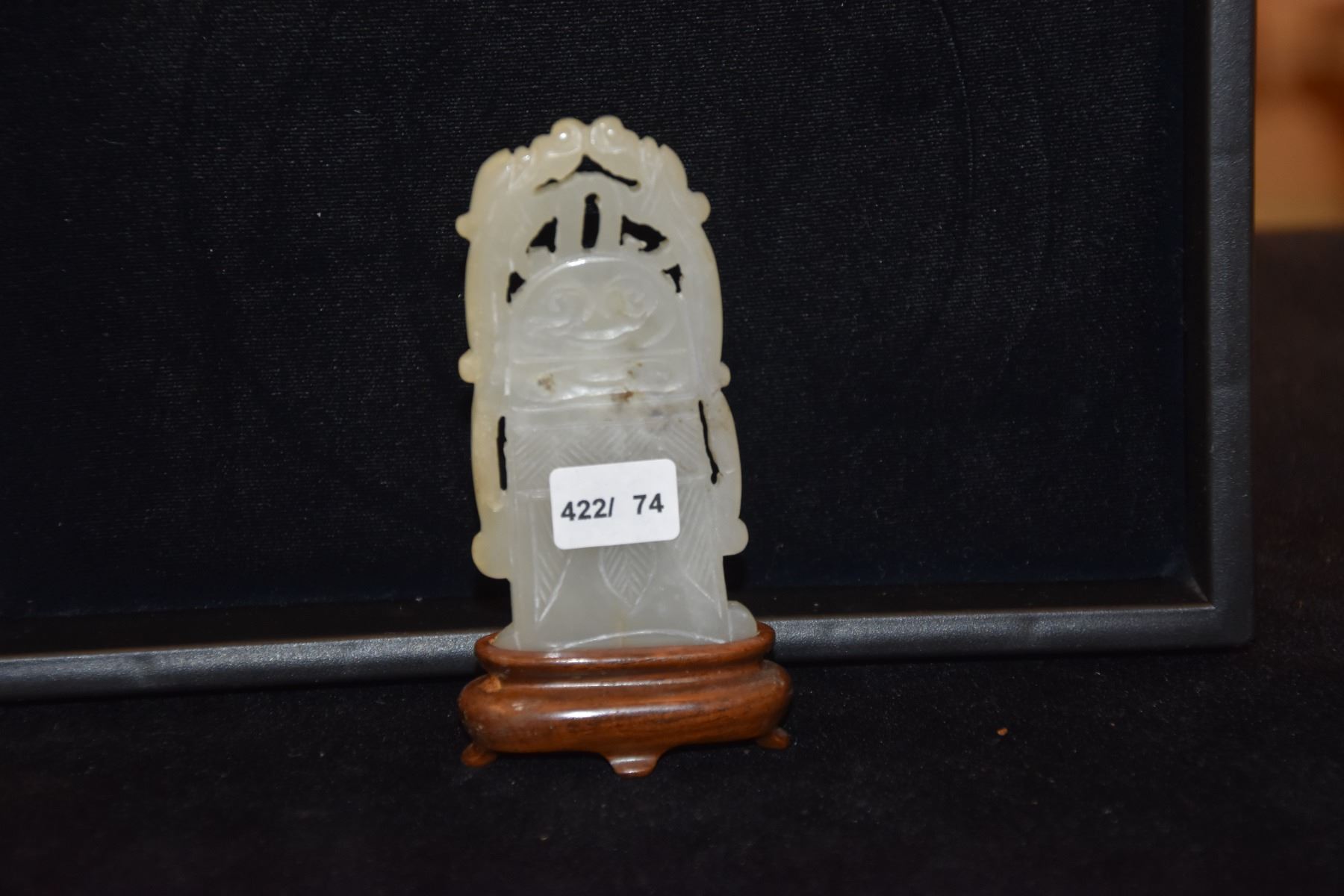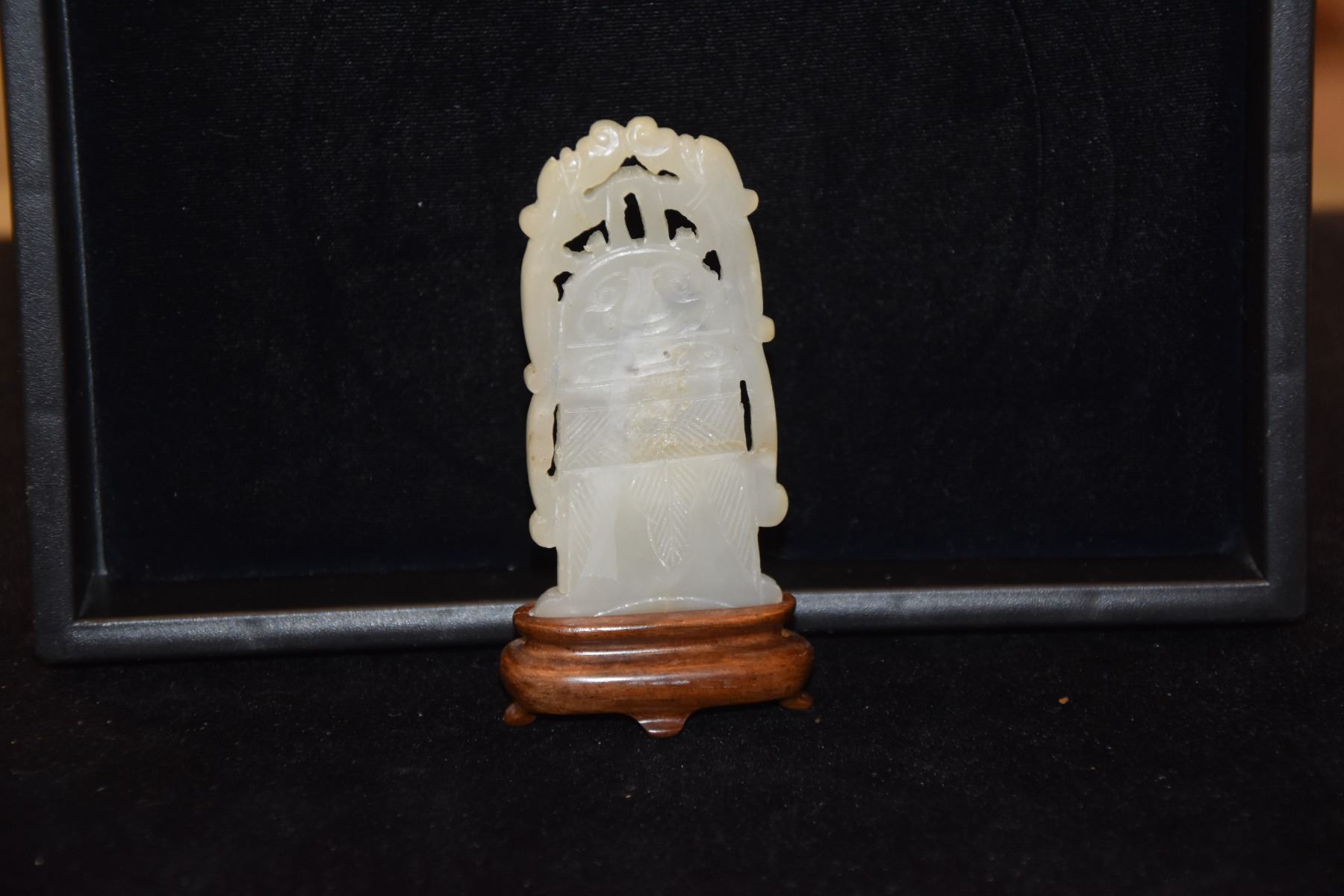 NEPHRITE DOUBLE DRAGON CARVING W/STAND (3 3/4 )
