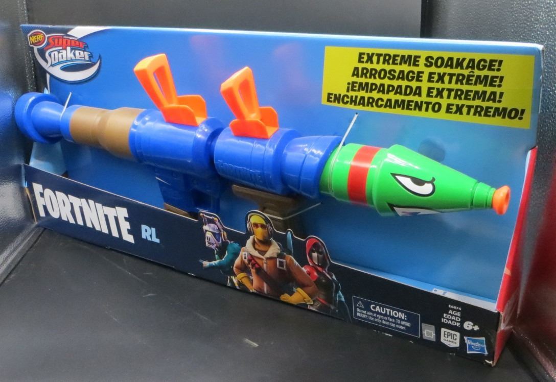 The Fortnite RL water blaster is inspired by the blaster used in Fortnite, replicating the look and colors of the rocket launcher from the popular video game! Extend the Fortnite fantasy into the backyard and drench the competition with extreme soakage! This Nerf Super Soaker water blaster holds up to 9.3 fluid ounces (275 milliliters) of water. It's easy to fill and easy to fire. Immerse the front in water and pull back the handle to fill the tank, then push in the handle to send a huge stream at your targets. Soak opponents with the Nerf Super Soaker Fortnite RL water blaster!