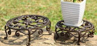 NESTED FLOWER PLANT STANDS - SET OF 2 - 5" x 13" x 13" - ALUMINUM