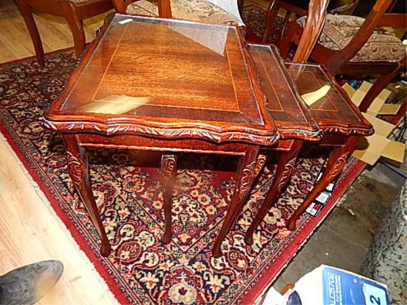 NESTING TABLES - INLAID - 3PC - CARVED LEGS