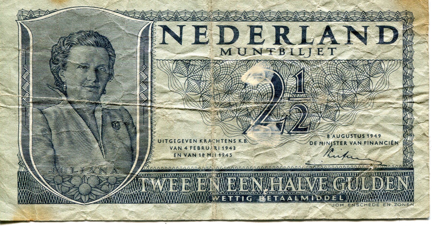 NETHERLANDS 2½ GUILDER ISSUED DURING WWII 1943