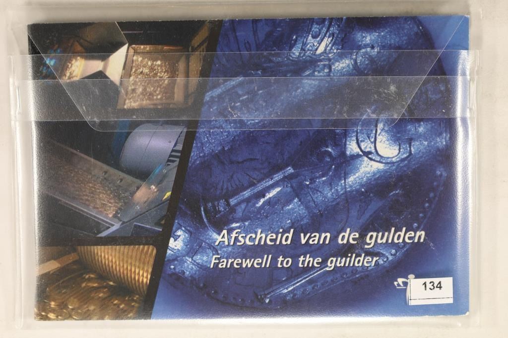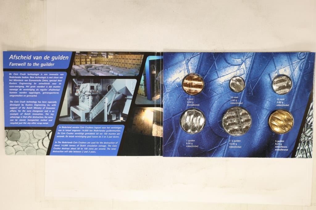 FAREWELL TO THE GULDEN. CONTAINS CANCELLED: 5 CENT, 10 CENT, 25 CENT, 1 GULDEN, 2 1/2 GULDEN AND 5 GULDEN IN ORIGINAL PACKAGING