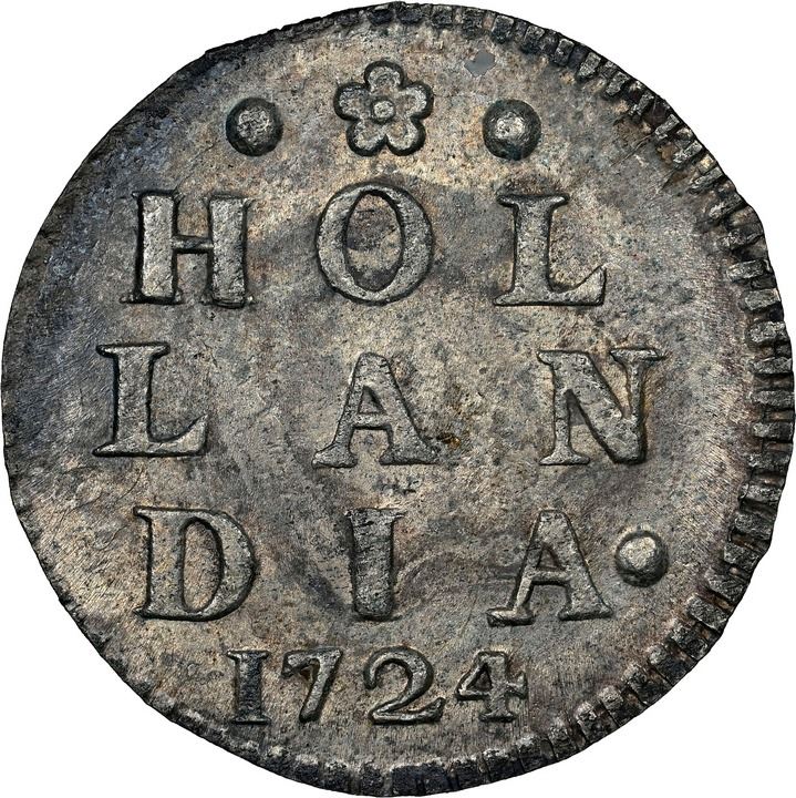 NETHERLANDS (United), Holland, 2 stuivers, 1724, NGC UNC details / saltwater damage (Shipwreck Blue Label). KM-48. Fairly lustrous, well-detailed piece with light corrosion and spotty toning. Recovered from: Akerendam, sunk in 1725 off Norway