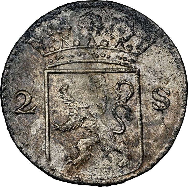 NETHERLANDS (United), Holland, 2 stuivers, 1724, NGC UNC details / saltwater damage (Shipwreck Blue