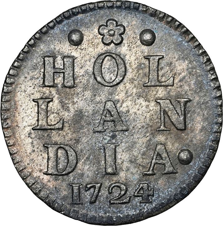 NETHERLANDS (United), Holland, 2 stuivers, 1724, NGC UNC details / saltwater damage (Shipwreck Blue
