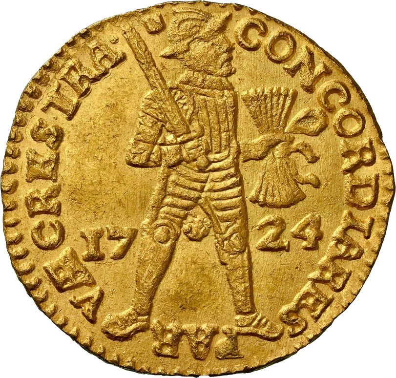 NETHERLANDS (United), Utrecht, gold ducat, 1724, NGC MS 63 (Shipwreck Blue Label).