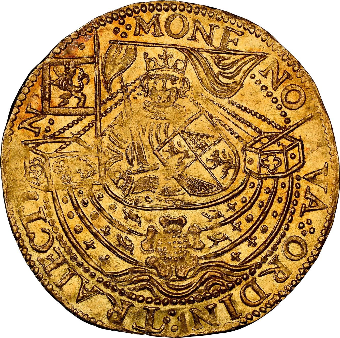 NETHERLANDS (United), Utrecht, gold imitative rose noble, no date (1600-01), NGC MS 63. Fr-277; KM-6. 7.59 grams. Rich gold color with lots of luster on fields, a few spots of red toning, second highest grade in NGC census, a well-detailed and choice example for this type, struck in the Netherlands in imitation of the English hammered gold noble coins from the 1300s-1400s.