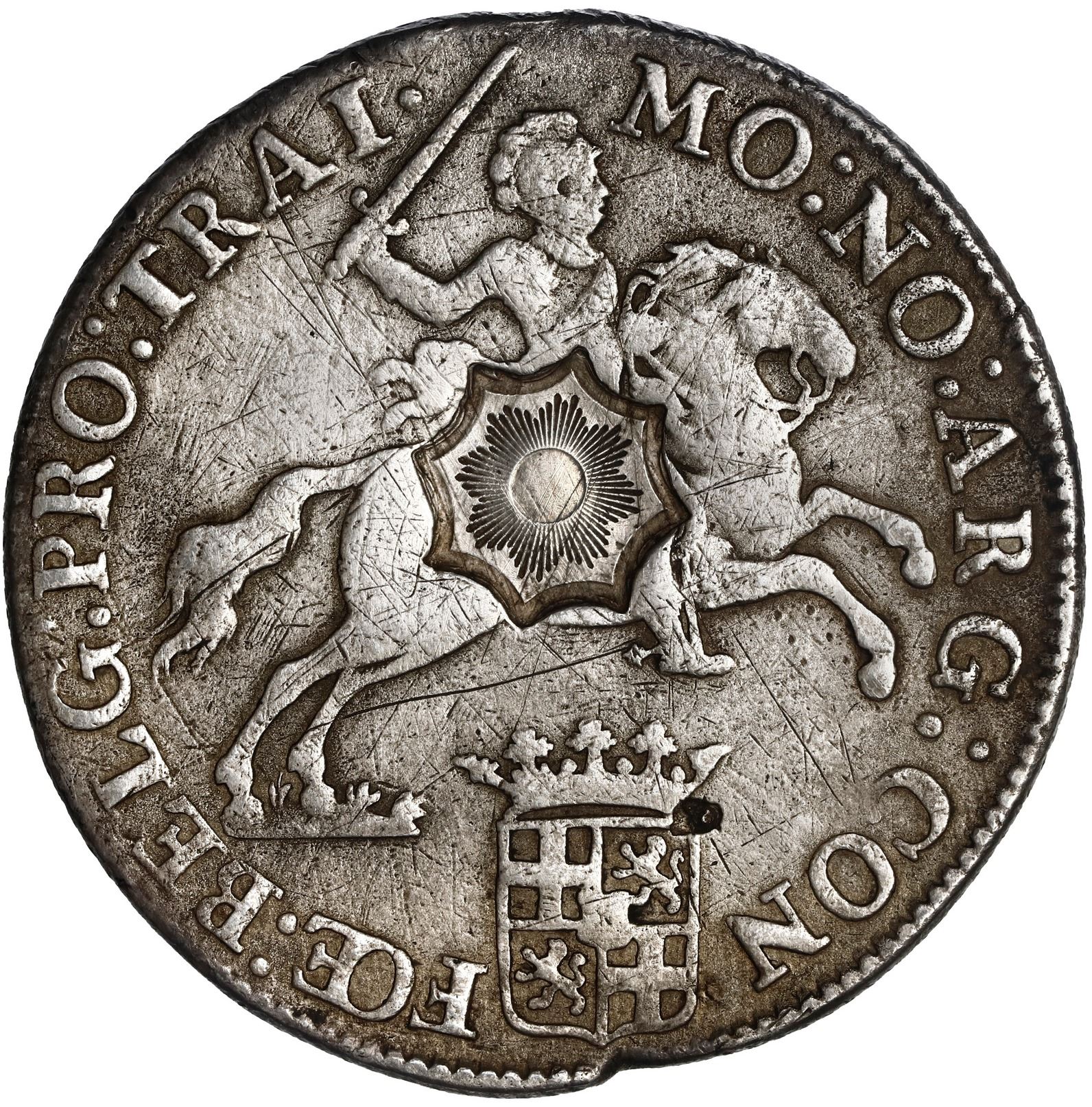 NETHERLANDS (United), Utrecht, "rider" ducatoon, 1785, with eight-point sunburst Asian countermark,