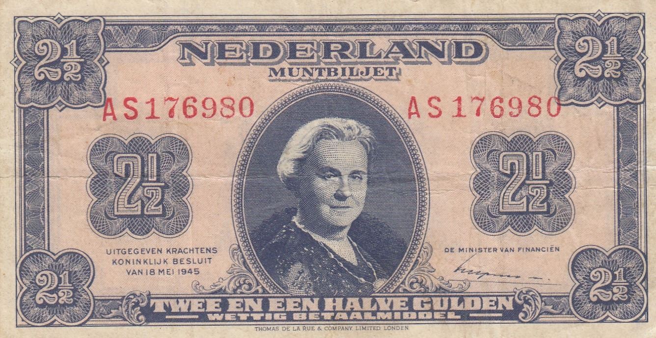 Netherlands, 2,5 Gulden, 1945, VF, p71