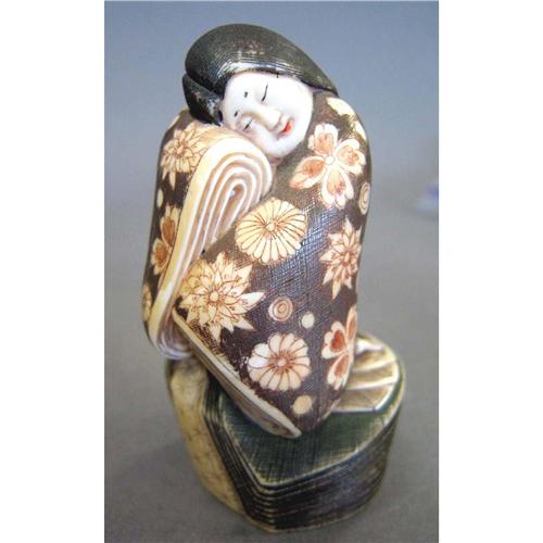 NETSUKE w/color detail signed Ksuyge height: 3"