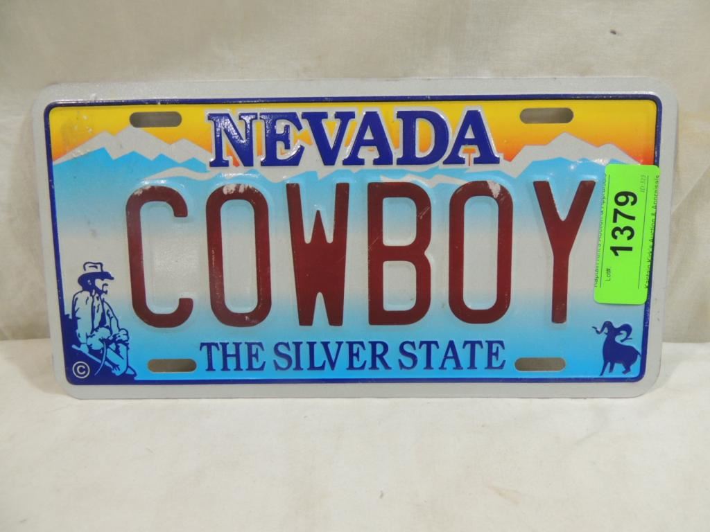 COLLECTIBLE LICENSE PLATE, NEVADA LICENSE PLATE, COWBOY NOVELTY PLATE, COLLECTOR PLATE AS SHOWN SEE PHOTO FOR MORE DETAILS.