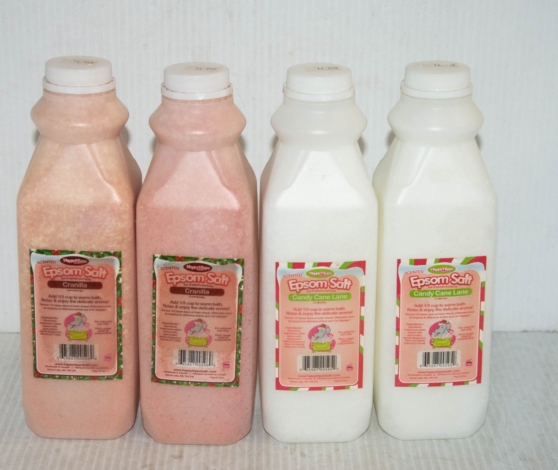 1 FLAT OF 4 1KG BOTTLES OF HAPPY HIPPO EPSOM BATH SALTS IN SCENTS OF 2 CANDY CANE LANE (PEPPERMINT) 2 CRANILLA (CANBERRY/VANILLA)**ALL ITEMS MUST BE REMOVED BY 5PM MONDAY, SEPTEMBER 17, 2022. ALL REMAINING ITEMS WILL BE SUBJECT TO A $6.00 PER DAY STORAGE CHARGE. ANY ITEMS REMAINING AFTER MONDAY, SEPTEMBER 17, 2022 WILL BE CONSIDERED FORFEITED. NO REFUNDS WILL BE ISSUED FOR FORFEITED ITEMS. TO SCHEDULE A PICK UP APPOINTMENT CLICK HERE