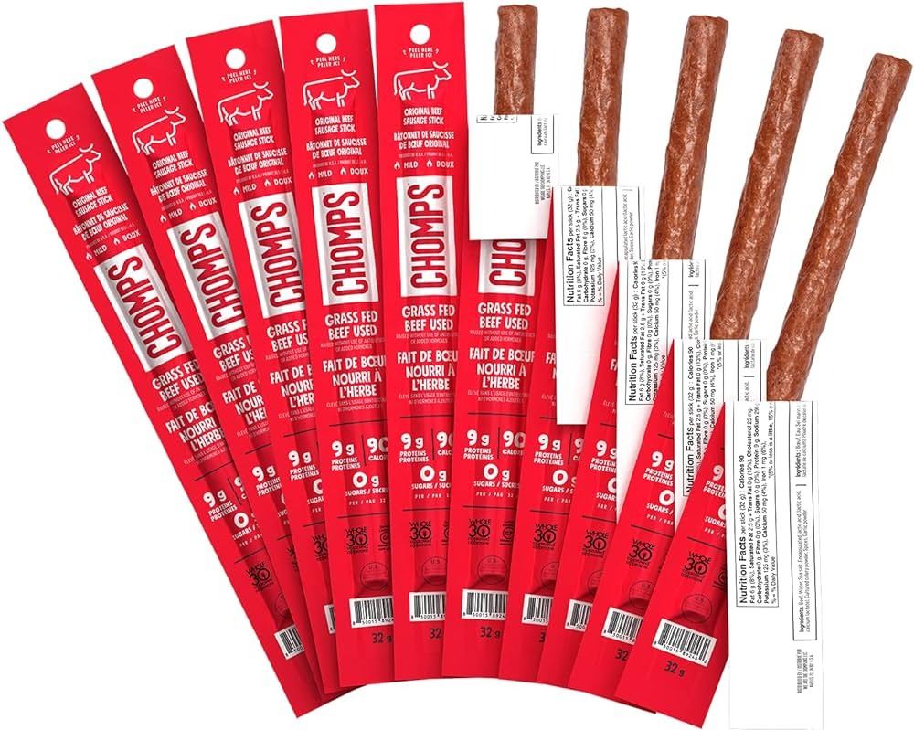 NEW 10 X 32G CHOMPS BEEF SAUSAGE STICKS