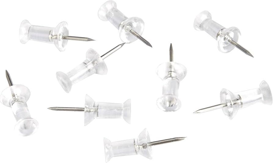 NEW 100 AMAZON BASICS PUSH PINS CLEAR PLASTIC HEAD