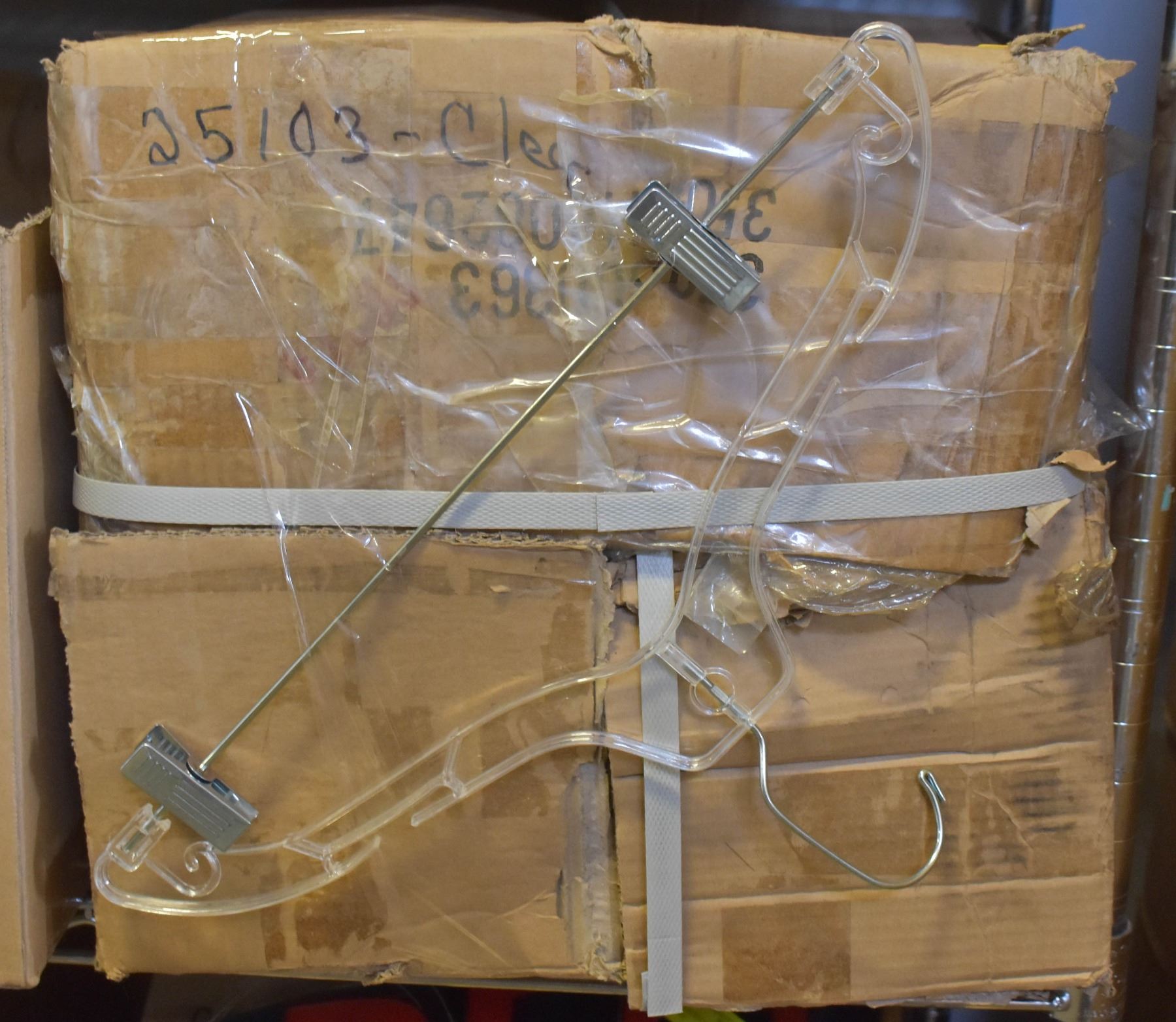 NEW 100 CLEAR PLASTIC HANGERS WITH CLIPS