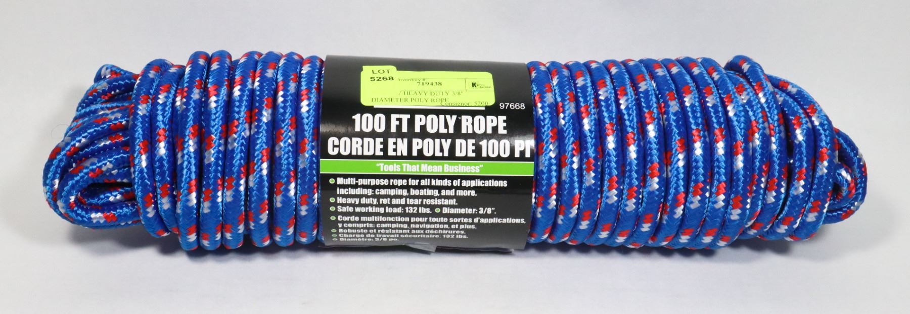 NEW 100' HEAVY DUTY 3/8" DIAMETER POLY ROPE