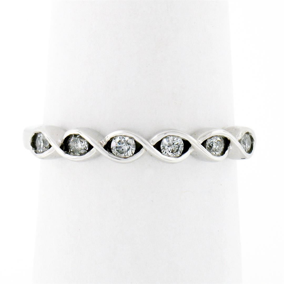 NEW 10k White Gold 0.20 ctw Round Channel Set Diamond Braided Eternity Band Ring