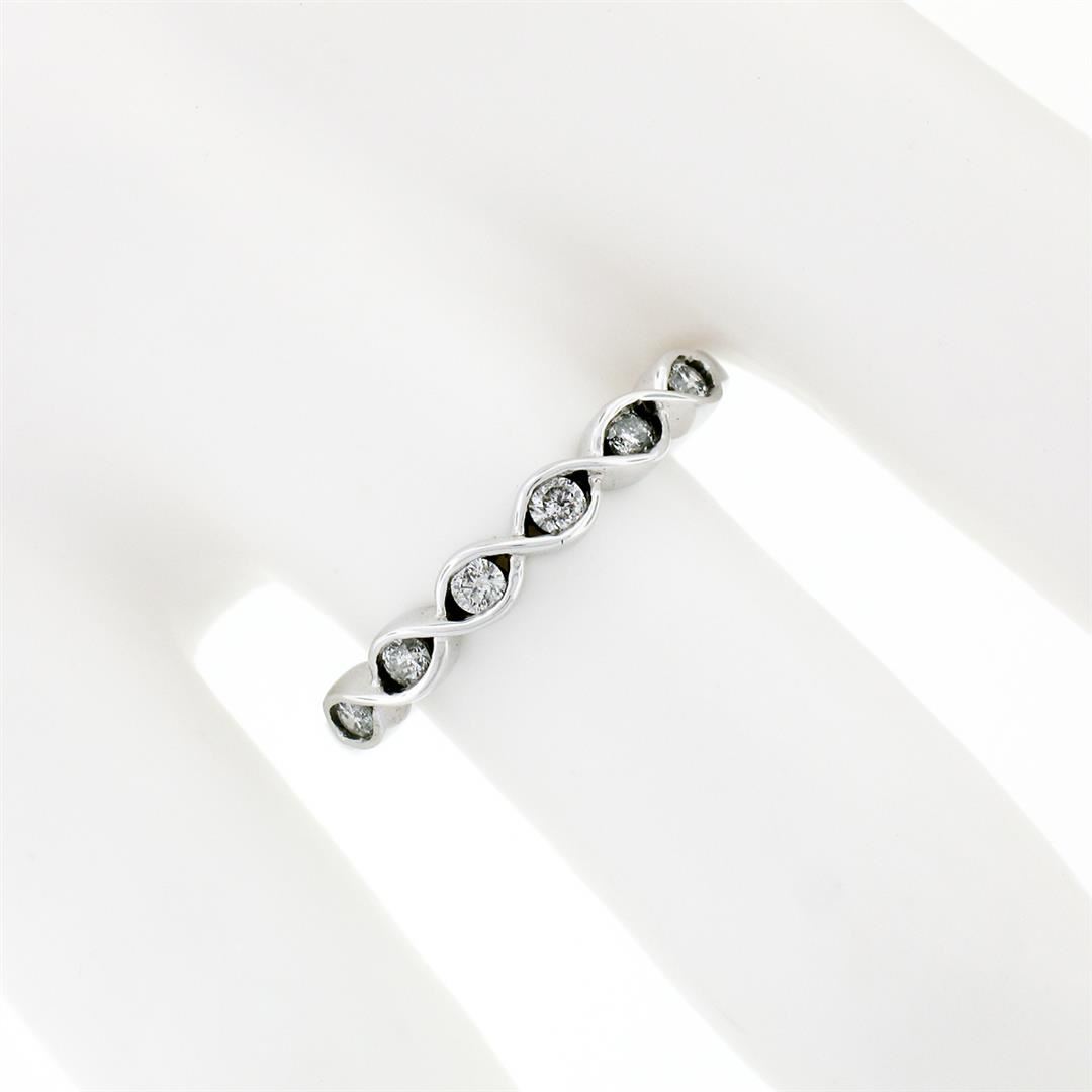 A new solid 10k white gold braided band ring, with 6 round brilliant cut natural diamonds (I - I1/I2 ; 0.20ctw). The ring is size 6.5, weighs a total of 2.07 grams, and measures 2.96mm wide.