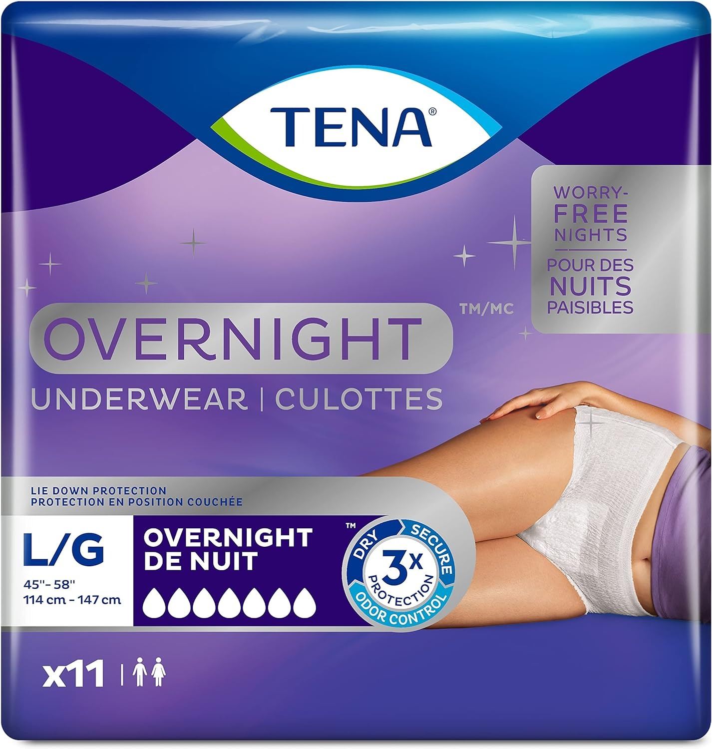 NEW 11 PACK OF TENA OVERNIGHT UNDERWEAR, LARGE