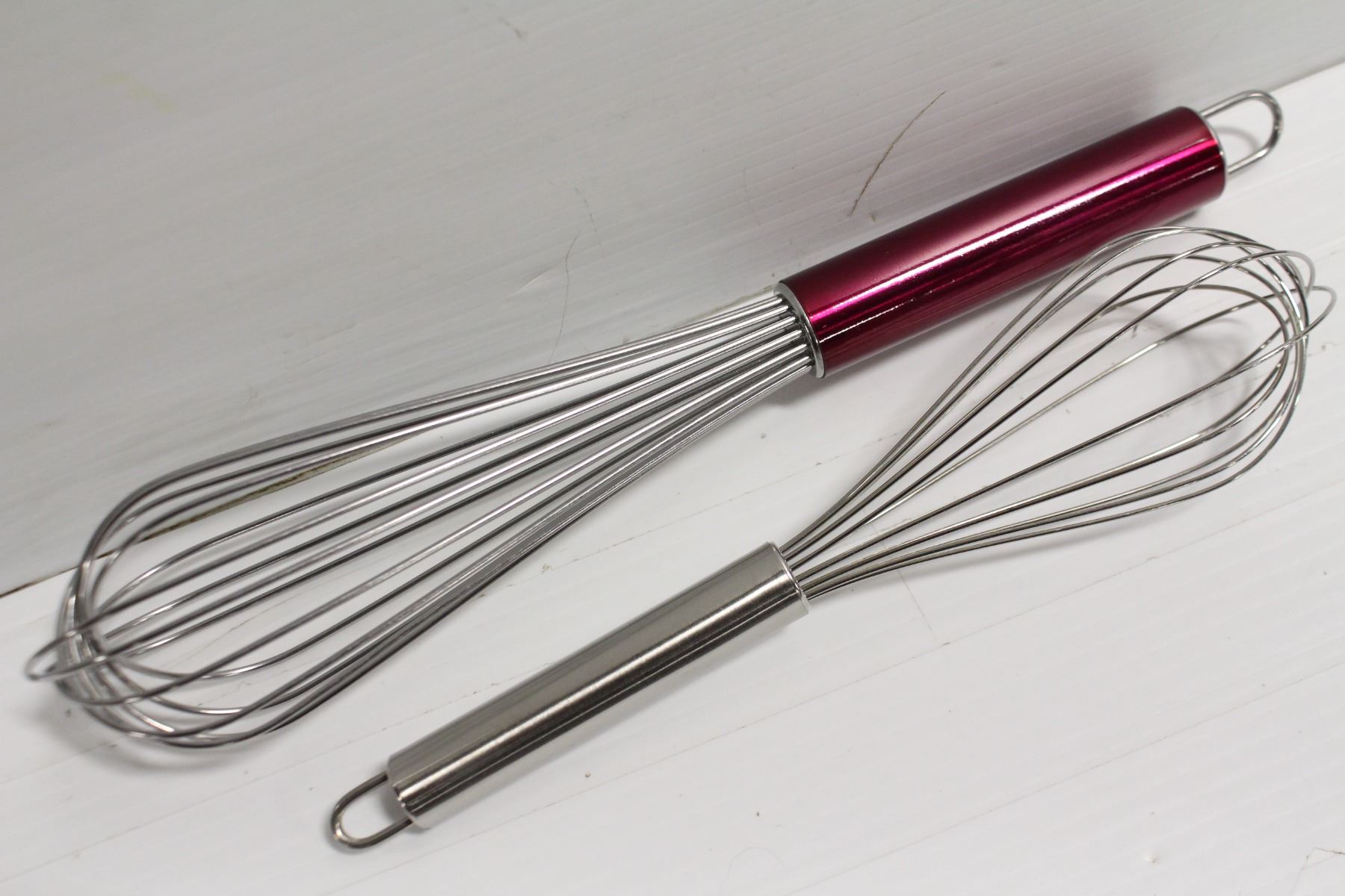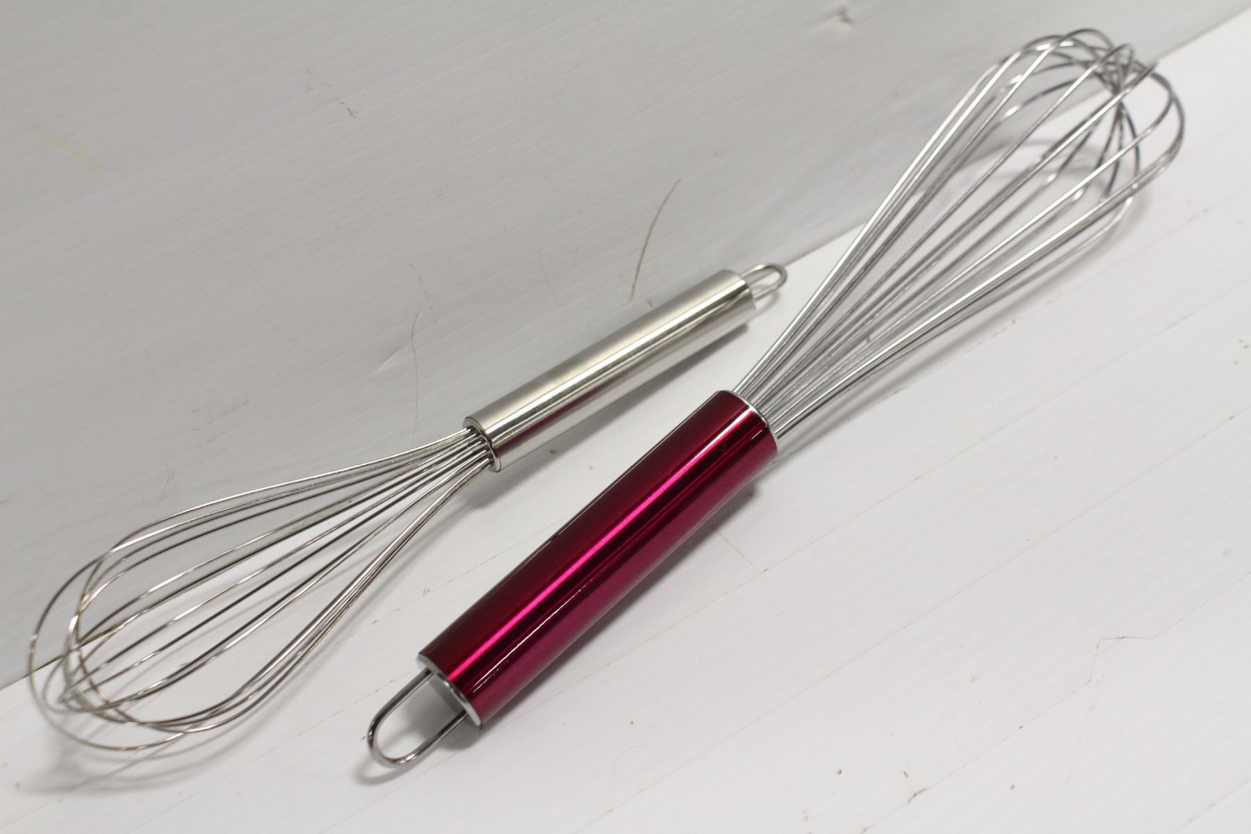 NEW 12" & 10" STAINLESS STEEL WHISKS. 12" IS COLOUR FINISH PIANO WHIP. **ALL ITEMS MUST BE REMOVED BY 5PM MONDAY, FEBRUARY 6TH, 2023. ALL REMAINING ITEMS WILL BE SUBJECT TO A $6.00 PER DAY STORAGE CHARGE. ANY ITEMS REMAINING AFTER MONDAY, FEBRUARY 20TH, 2023 WILL BE CONSIDERED FORFEITED. NO REFUNDS WILL BE ISSUED FOR FORFEITED ITEMS.** TO SCHEDULE A PICK UP APPOINTMENT CLICK HERE