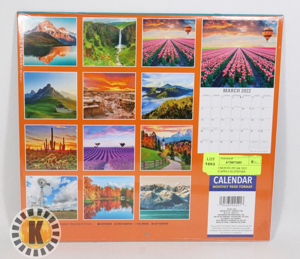 NEW 12 MONTH 2PCAK 2022 LANDSCAPES CALENDARS